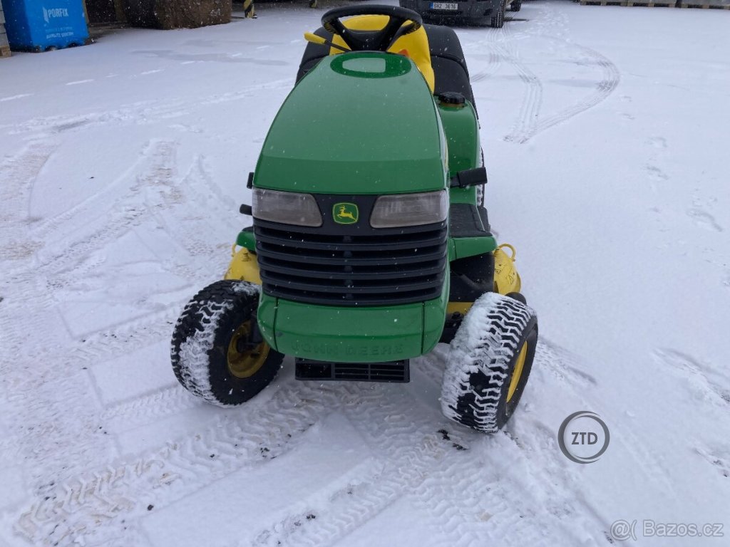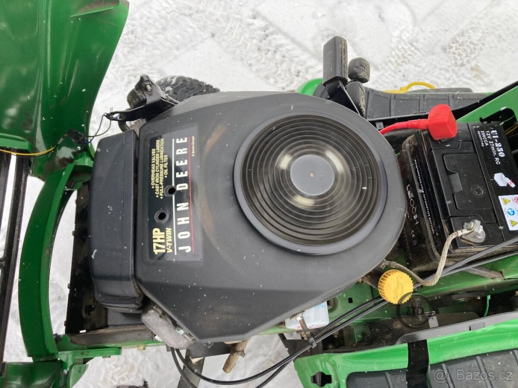 Robustní zahradní traktor John Deere LTR 180 , motor tlakově mazaný dvouválec Kawasaki 17 Hp ,pojezd hydrostatická převodovka , sečení dva nože záběr 102 cm , koš o objemu 300 litrů , litinová přední náprava ,stroj je celkově velmi zachovalý , nová baterie ,oleje ,filtry ,řemen pojezdu. Více info na tel.